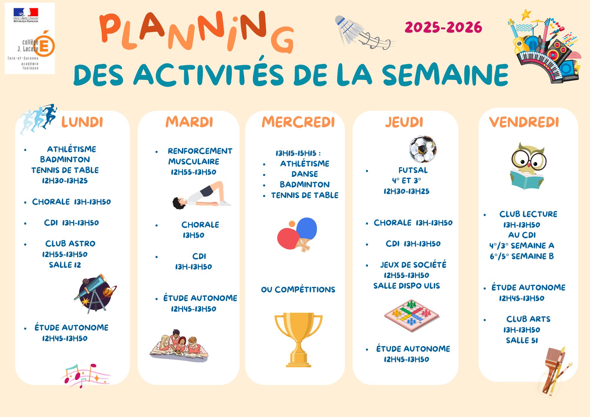 Planning des activités 2025-2026